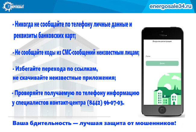 • Сотрудники «Волгоградэнергосбыта» никогда не просят сообщить информацию из СМС.