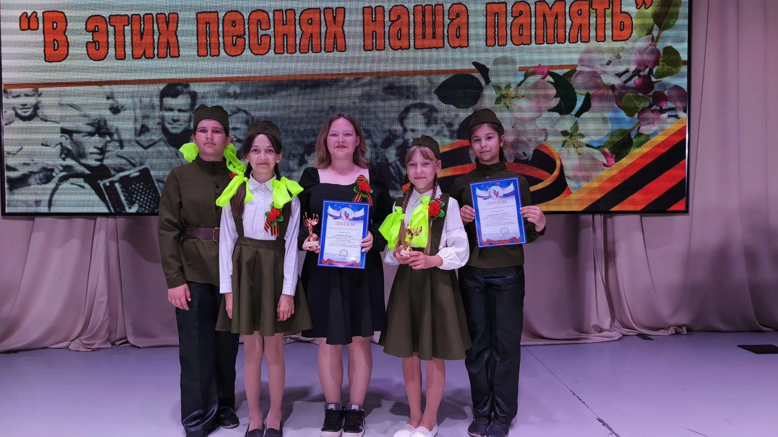 30 мая на сцене РДК "Юбилейный" состоялся районный смотр-конкурс детской патриотической песни "В этих песнях наша память". Наши Терсинские девчонки достойно представили наше любимое село. Поздравляем вокальную группу "Смайл": Серенко Веронику, Порубилкину Варю, Лешпаеву Кристину и Пузину Варю с 1 местом и Панжину Эвелину с 3 местом! Соперники были достойные, но мы смогли забрать 2 кубка в копилку нашего ДК. Это здорово, что мы можем радоваться нашими достижениями и призовыми местами. Желаем всем участникам не останавливаться на достигнутом и покорять новые вершины в творчестве!